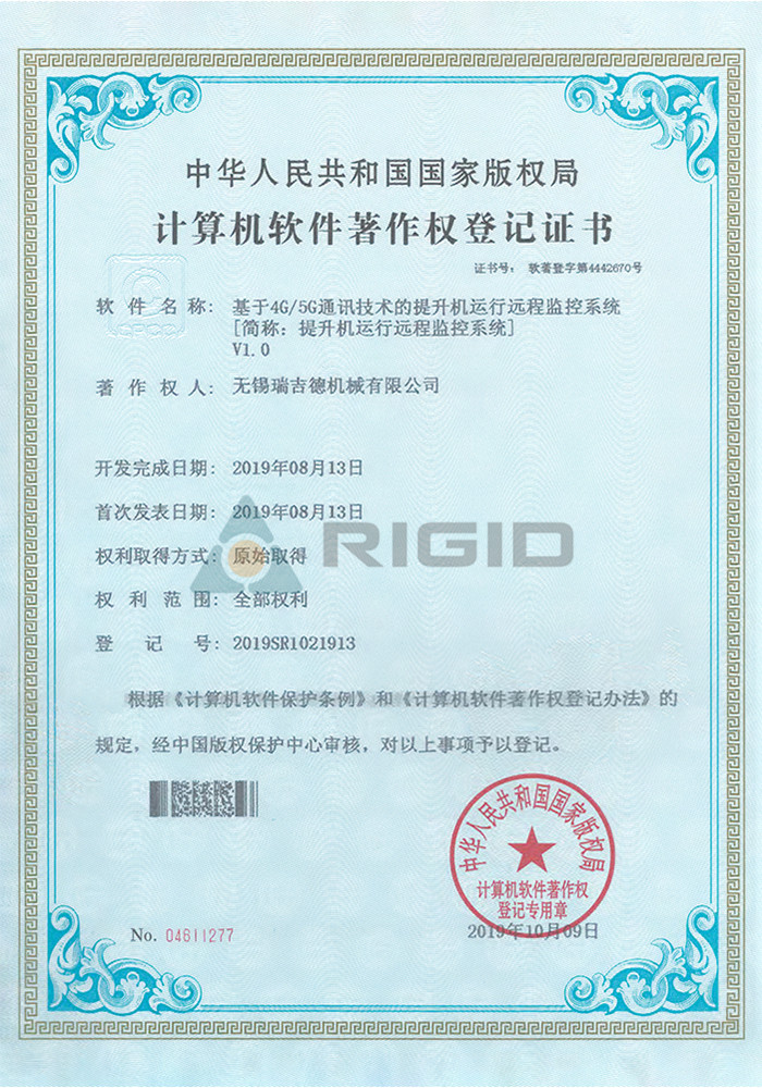 2019SR1025529 Встроенное программное обеспечение для мониторинга данных эксплуатации лифта на основе технологии связи 4G5G