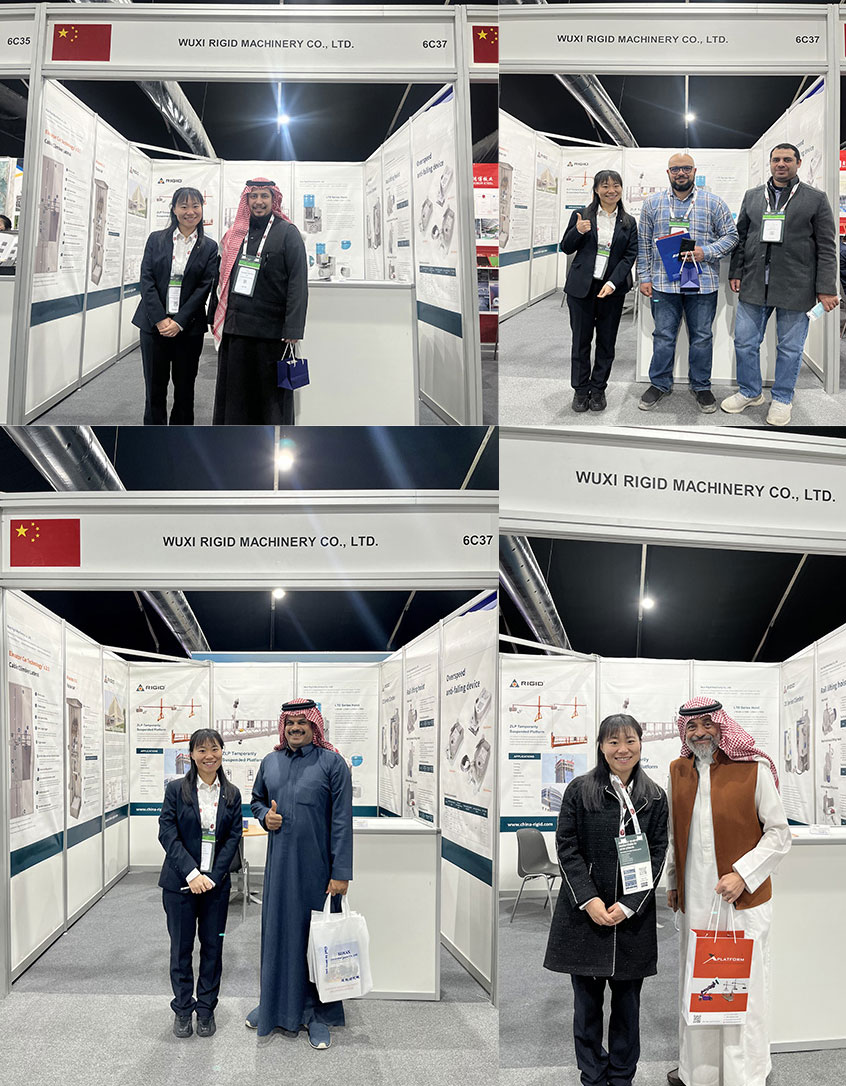 Во время выставки RIGID сосредоточился на саморазработанном интеллектуальном высоком рабочем подвесном платформном оборудовании, технологии оборудования для веревного лазания и различных типах пилотируемого грузового интеллектуального подъема, привлекая профессиональных посетителей из Саудовской Аравии, Объединенных Арабских Эмиратов, Египта и других стран Ближнего Востока и Европы и Соединенных Штатов для остановки и переговоров Компания показала клиентам эффективность и безопасность своей продукции в сверхвысотных зданиях, обслуживании мостов, установке ветровой энергии и других сценариях, и достигла первоначальных намерений сотрудничества с рядом международных инженерных подрядчиков.